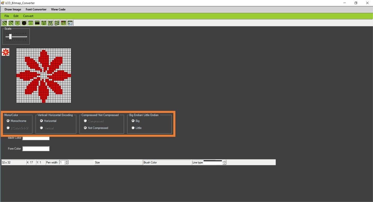 Here we have used the LCD Bitmap Converter application