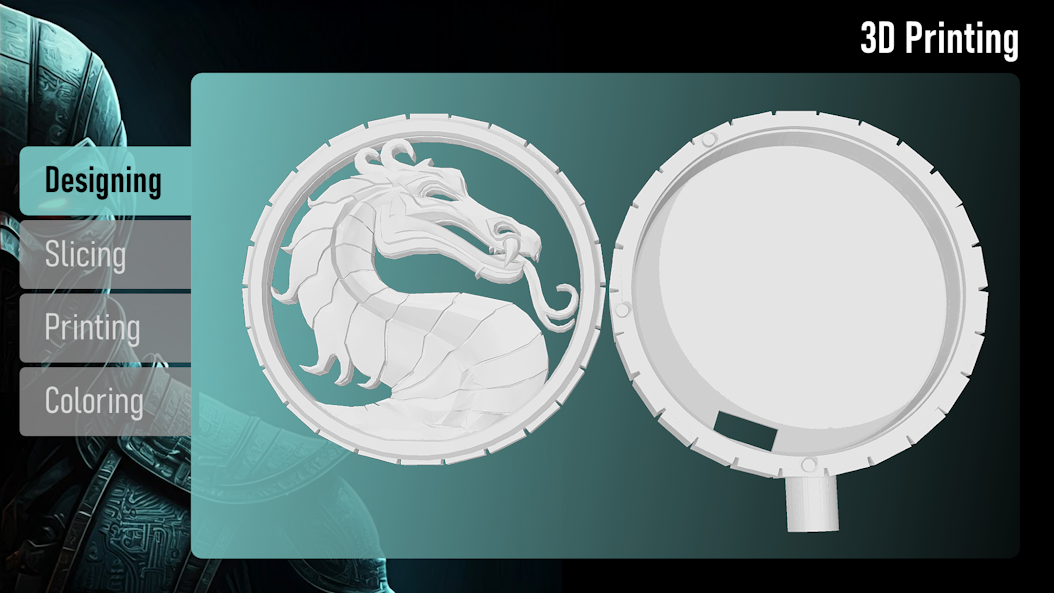 This project features a custom 3D-printed 'Mortal Kombat' trophy shell paired with a basic NE555 timer circuit in 'astable mode', producing a smooth 'breathing' LED effect—mimicking the gentle pulse of a living light.