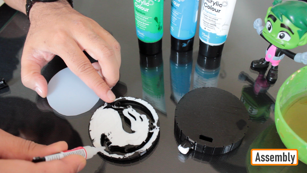 Alright, it's time for me to put everything together! First, let’s glue the plastic cutout to the back of the front bit.