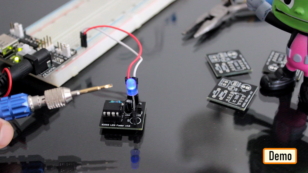 To make it easy for you guys, I have created this tiny little "555 LED Fader Module". After assembling the components, you just need to power this module by providing a voltage between 5v to 15v to fade the LED.