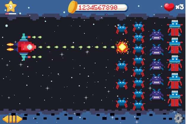 Arcade games are fast-paced, simple-to-play video games and Goal is usually to get the highest score, not complete a story. In this type of games you’re always doing something (shooting, jumping, etc.), often usingjust a joystick with 1–3 buttons.