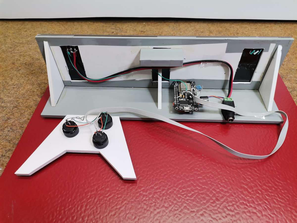 I simplified the device's construction as much as possible, the matrix was first glued to the substrate, and then I placed frosted glass in front of it for a better visual effect with some light diffusion. Then I made a simple two-dimensional joystick that contains three colorful buttons with built-in LEDs, but standard buttons can also be used.
