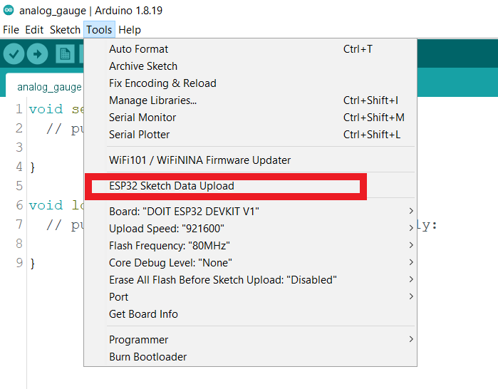 - In this guide, we will build a web server with the ESP32 to display temperature sensor readings on the analog gauge.