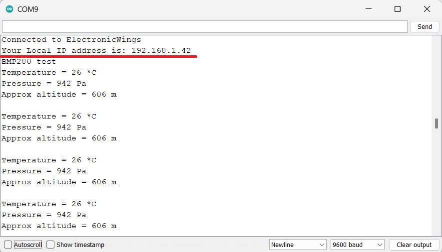 Reading the values from BMP280 and displaying them on the Arduino IDE’s serial monitor.