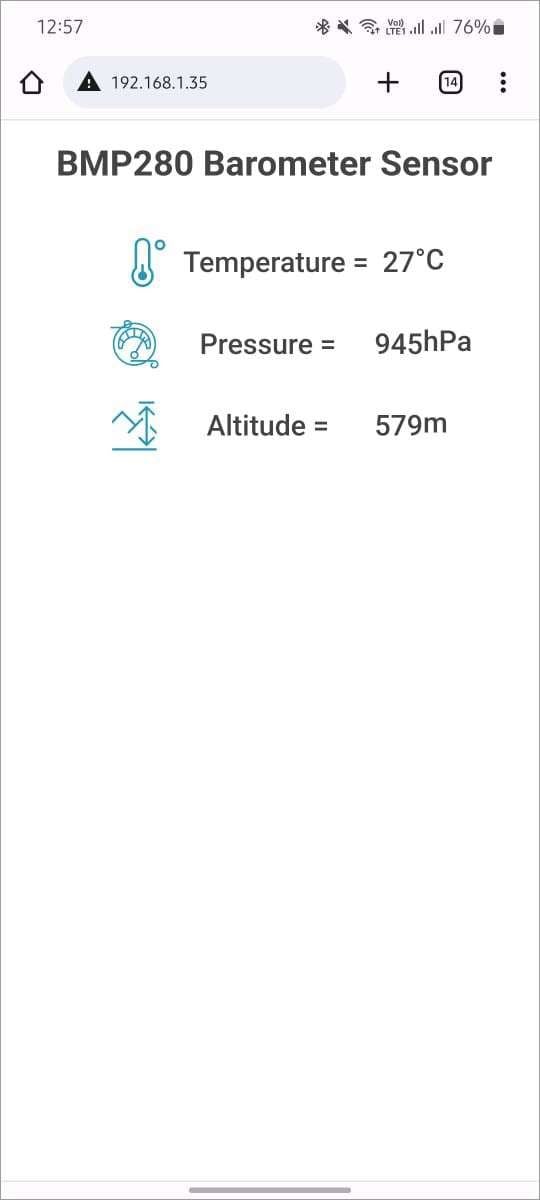 Now, on the other hand, using the function using function bmp280(), we send the updated values of temperature, pressure, and altitude to the webpage.
