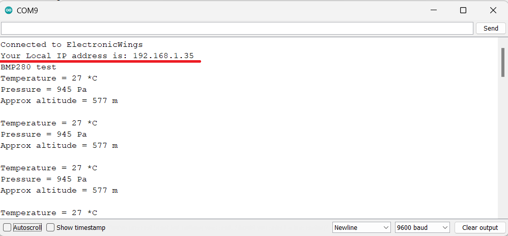 Reading the values from BMP280 and displaying them on the Arduino IDE’s serial monitor.