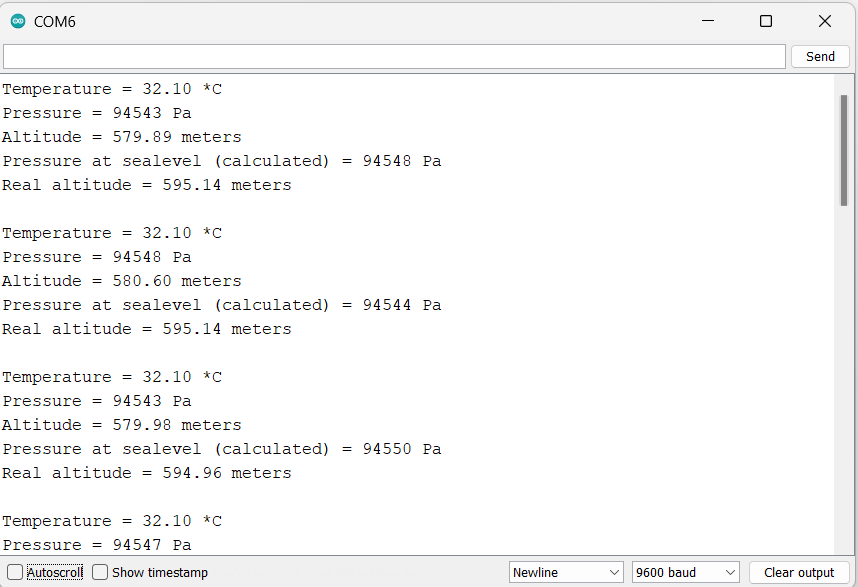 readTemperature(),readPressure(),readAltitude(), andreadSealevelPressure(). - The data is extracted using these functions and displayed the values on the serial monitor one by one repeatedly.