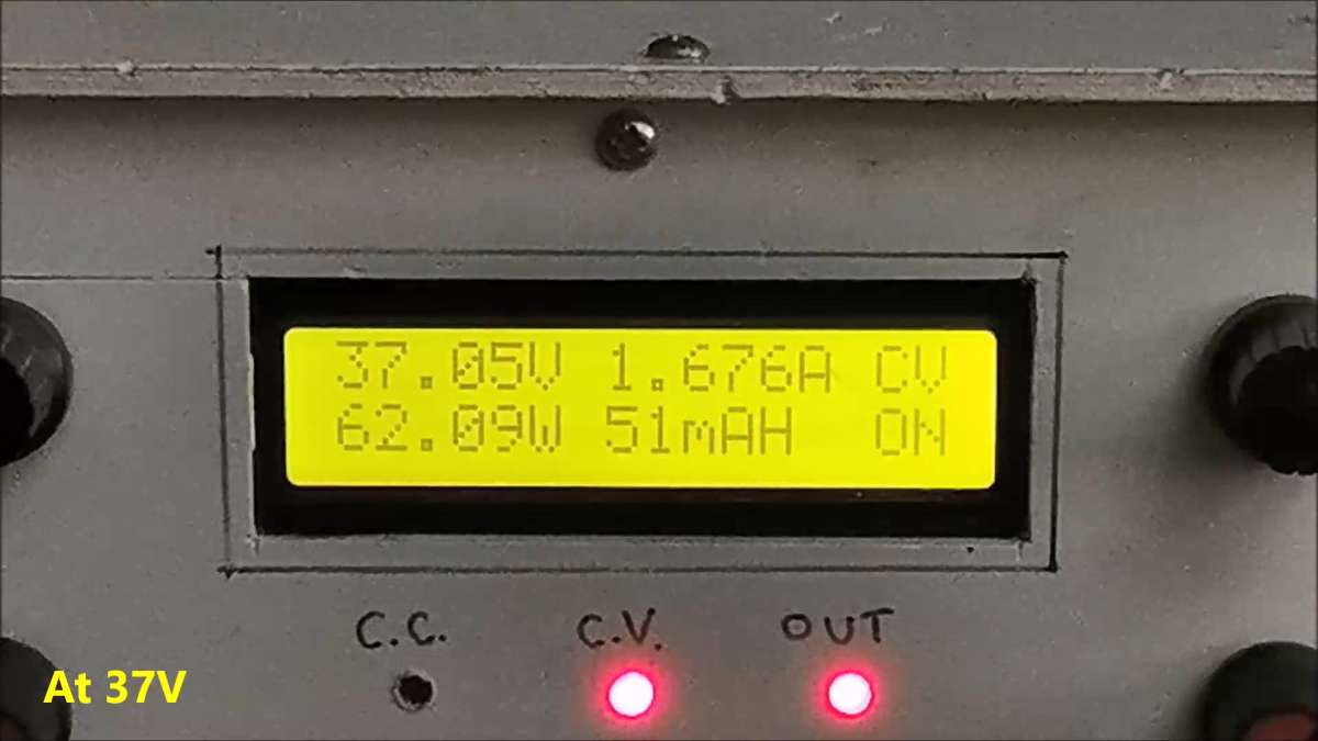 At a certain point, the bulb should light up, which is a sign that the circuit is oscillating and we can continue with further tuning. Also, if the bulb does not light up at half turn of the potentiometer, we should try to set the variable capacitor in the desired position to oscillate the circuit. To avoid unwanted damage by burning the Mosfet, we should continue testing by gradually increasing the voltage, limiting the current to around 2A. We try to get a stable plasma flame by tapping the topload tip with an insulated screwdriver. In this particular case, the lowest voltage at which the plasma flame was formed is 36V and it works quite stably at 40V and a current of about 1.8 Ampere.