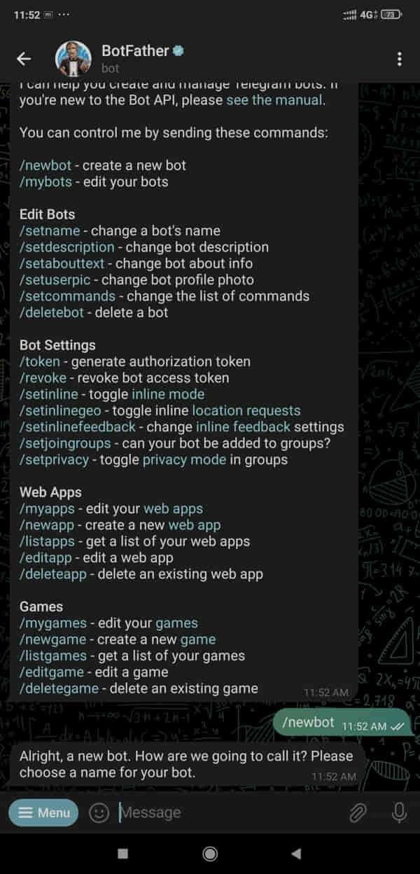 Now type /newbot and press enter.