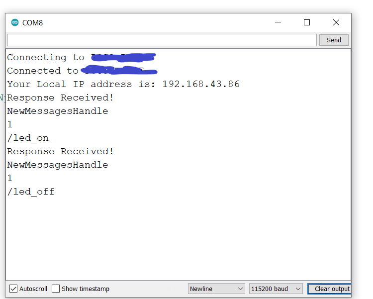 Serial.println(String(NewMessages));To process and handle incoming messages. It checks the chat ID of each received message and verifies if it matches the authorized chat ID (CHAT_ID).