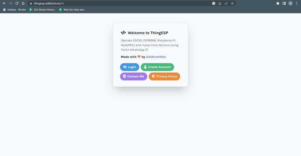 - So we will take the help of ThingESP which is an API that receives the message from WhatsApp to esp32 and take the actions according to program or script.