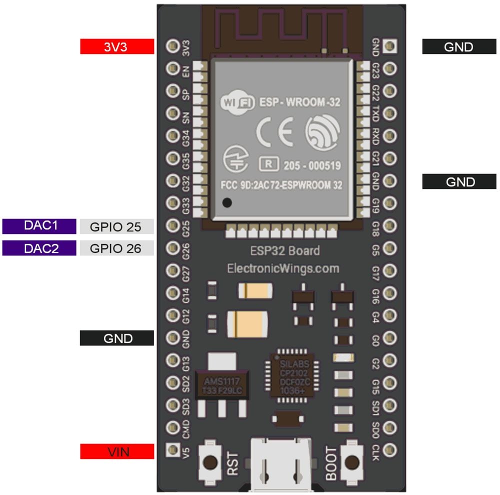 With 3.3Volt, our ESP32 will provide the 0-volt for digital 0 and 3.3volt for digital 255. However, in practical, output by DAC is a bit lower i.e. max 3.25v for 255.