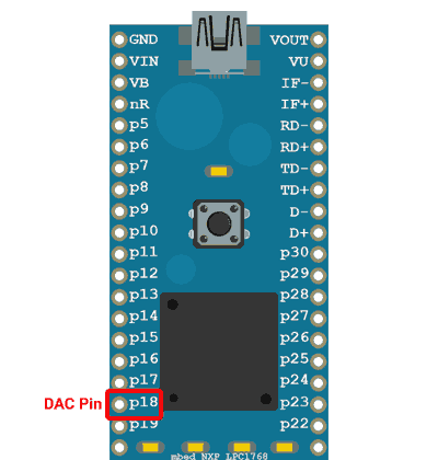 The analog output pin p18 of ARM MBED LPC1768 is shown in below image,