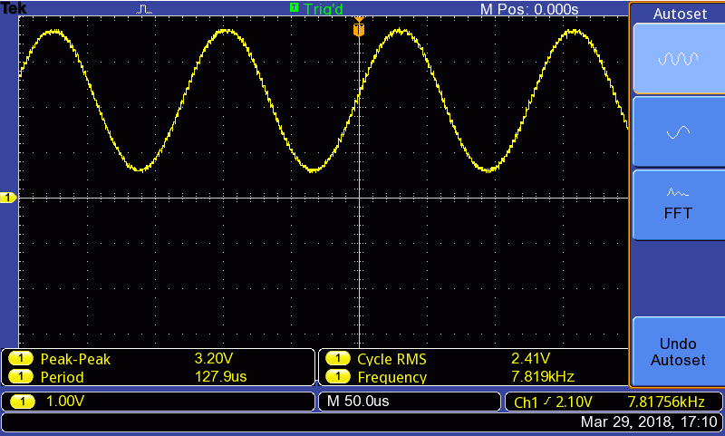 sine1[n] = 0.5 + 0.5*sin(n*w_hat); //note the 0.5 V of offset since DAC outputs voltage between 0 and 3.3V