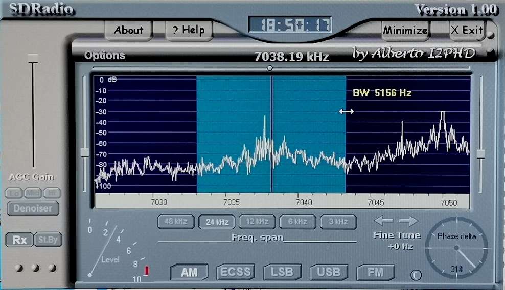 On the software we can monitor the reception signal very clearly and precisely, and we can also set the type of demodulation, namely AM, LSB or USB, as well as the bandwidth of the received signal. The stability of the frequency of the received signal mostly depends on the VFO generator, which in this case is very stable and precise. That's why we can perform demodulation of several digital radio signals with different software.