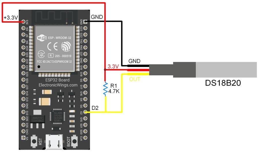 DS18B20 Interfacing Diagram with ESP32