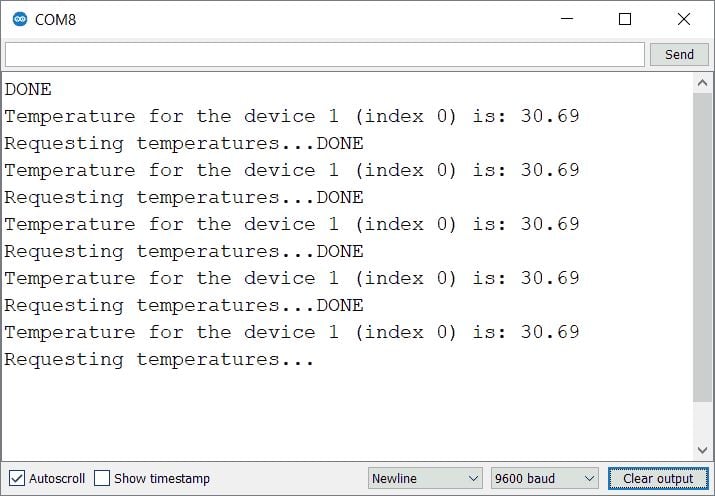 Here we are using DallasTemperature libraries for the above example. We need to install the DallasTemperature library using the Arduino Library Manager.
