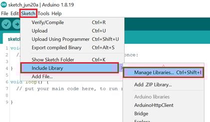 - Navigate to Sketch ► Include Library ► Manage Libraries…