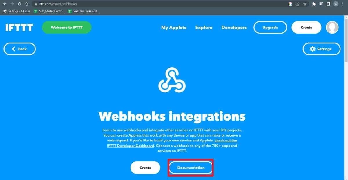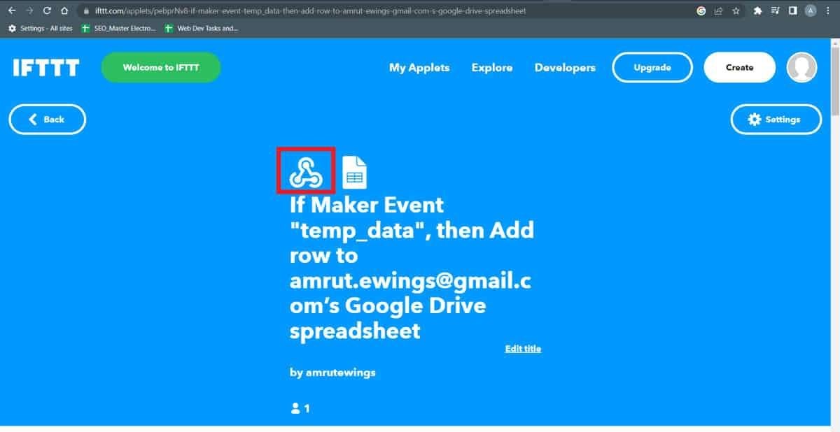 - Now ESP32 will communicate with the IFTTT Webhooks service to publish those readings on the spreadsheet.