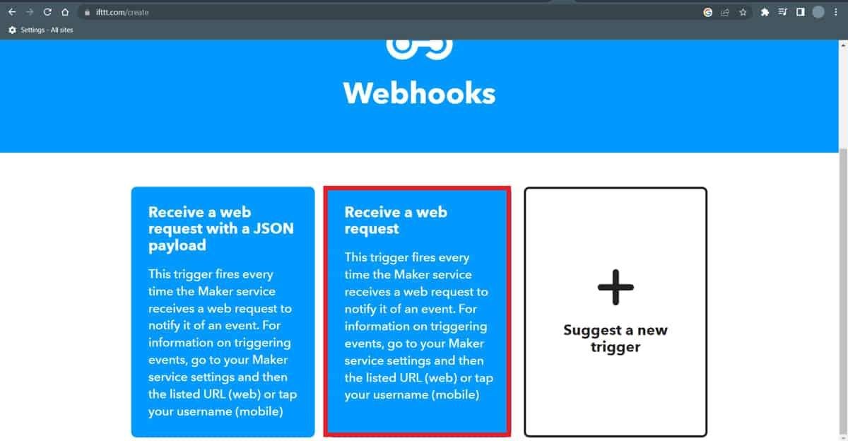 Now click on Receive web request