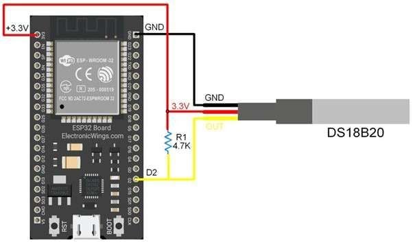DS18B20 Interfacing with ESP32: