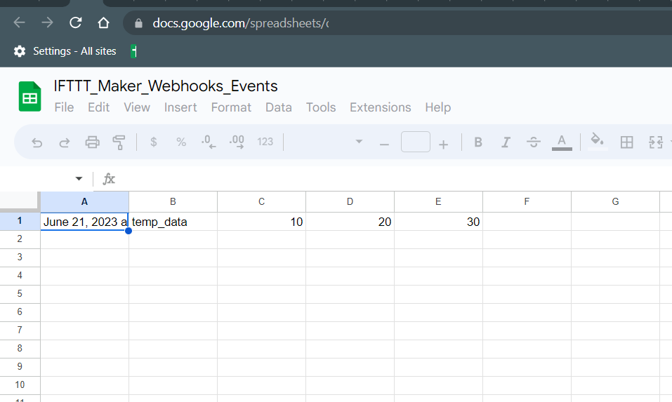 Now open your drive and check with your sheet name and open it and see the data which you have send using IFTTT