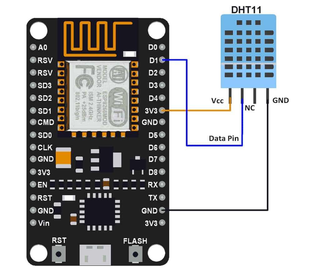 Connection Diagram of DHT11 with NodeMCU