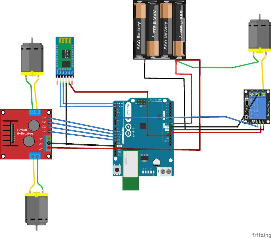 - Connect 9,10,11,12 pins of arduino to IN4,IN3,IN2,IN1 of L298n motor driver respectively..