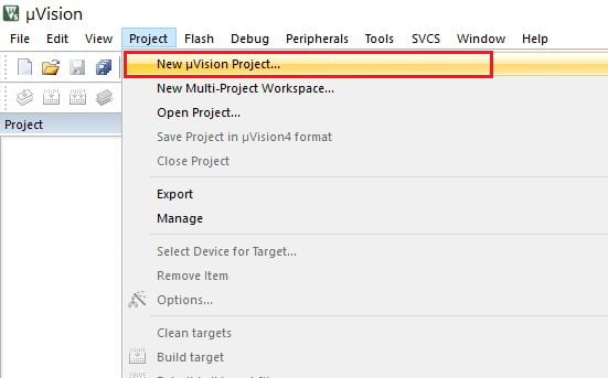 Click on the Project menu and select the New µVision Project…