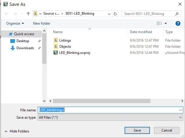 Save program code with “.c“ extension (In case if you are using assembly language then save program code with “.asm“ extension)