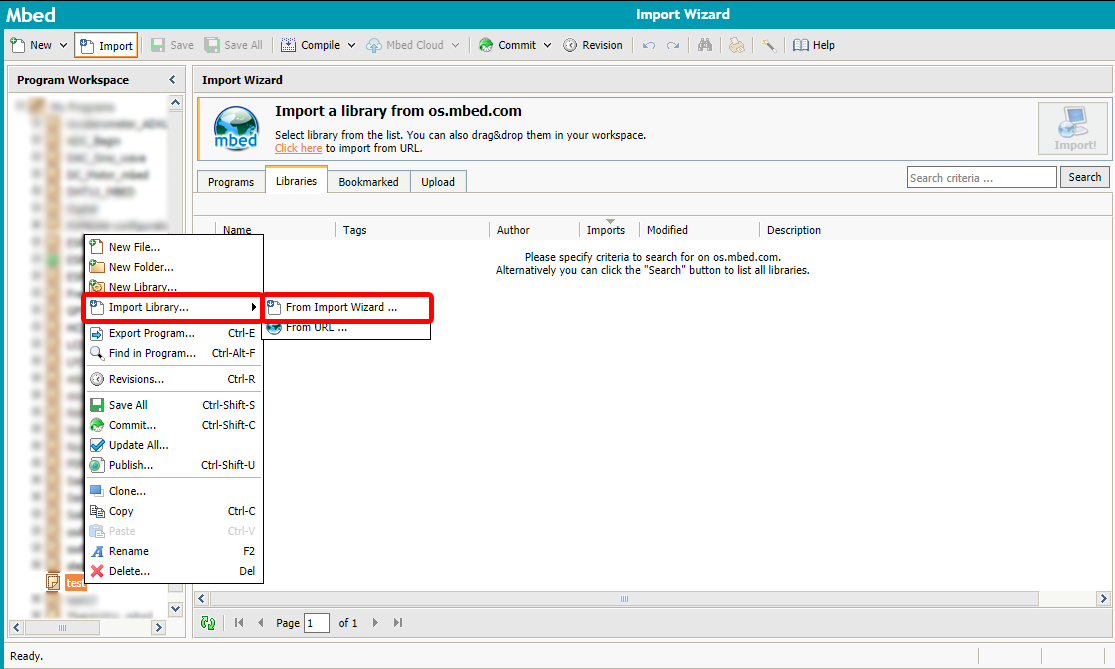 3. Now right click on you are created project and click on Import Library -> From Import Wizard …