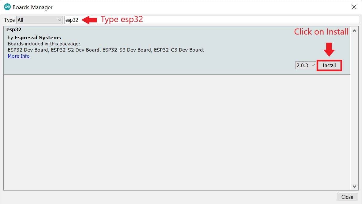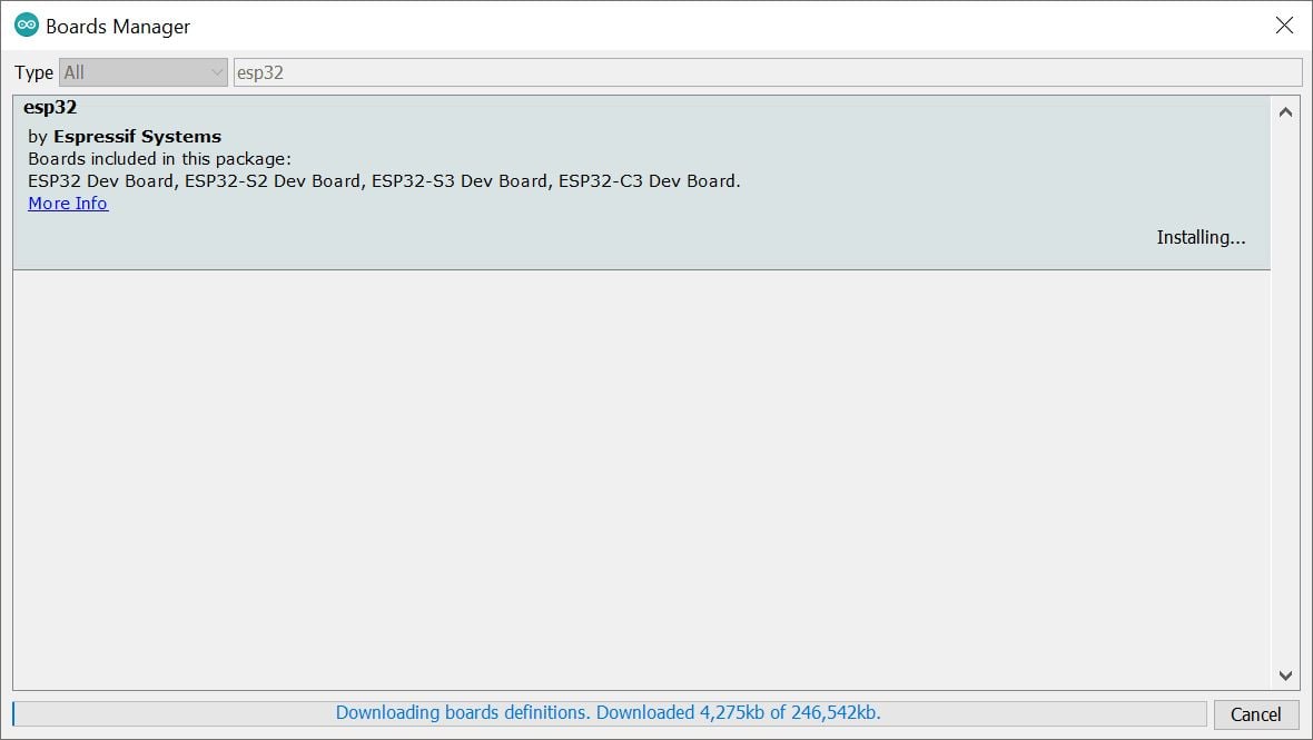 To add the ESP32 board go to the path Tools ► Board ► Boards Manager…
