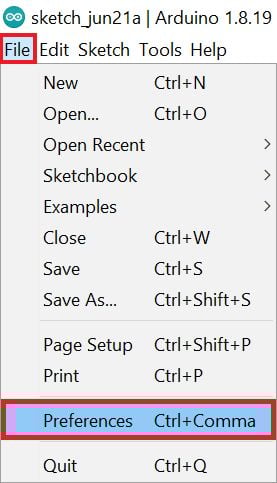 Open the Arduino IDE and go to File ► Preference as shown in the below image.