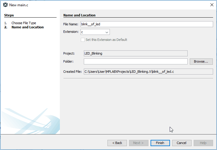 10. Name a Project e.g. LED_Blinking_demo also set Path for Project Folder and Click on Finish.
