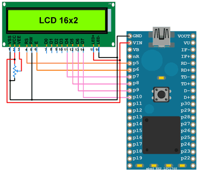 Connection Diagram of LCD16x2 with ARM MBED (LPC1768)