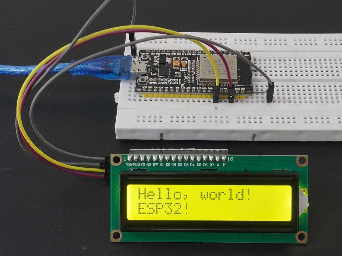 lcd.print("Hello, world!");Now set the cursor on for the second row and first column to print the ESP32