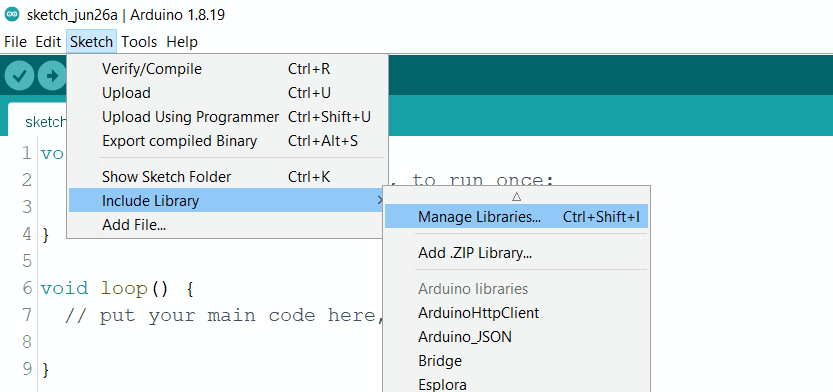 - Navigate to Sketch ► Include Library ► Manage Libraries…