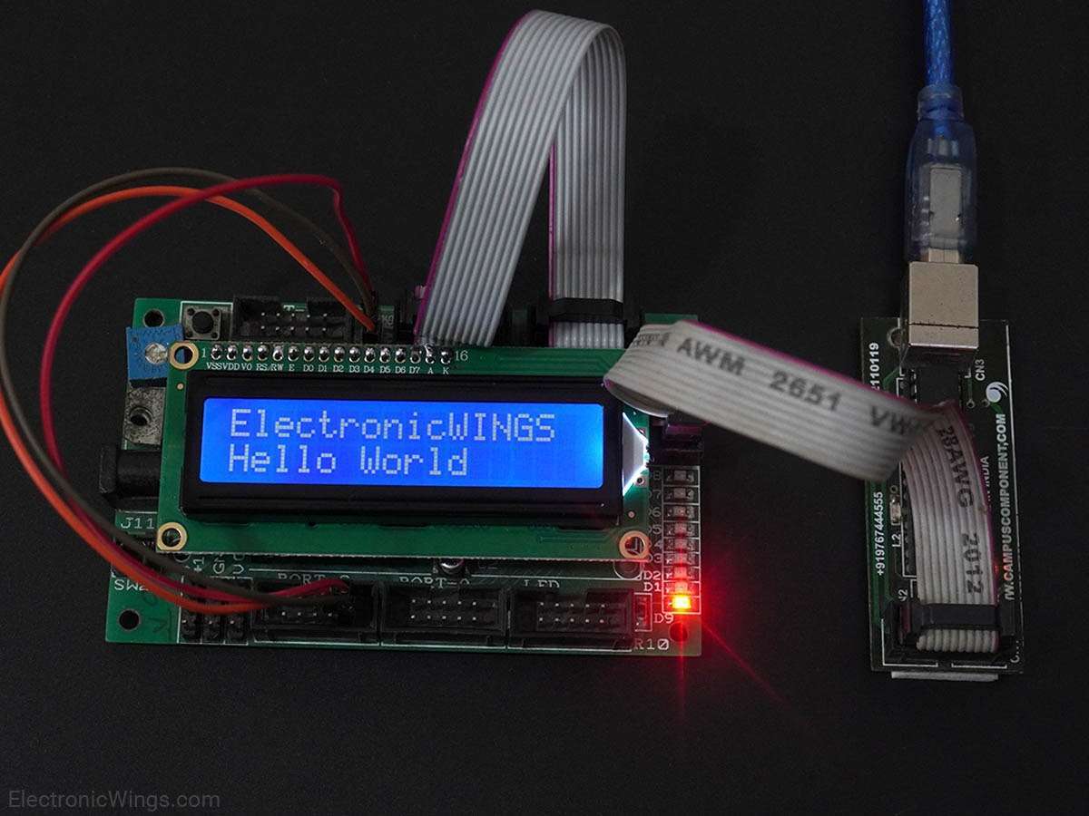 LCD_String("ElectronicWINGS");/* Write string on 1st line of LCD*/