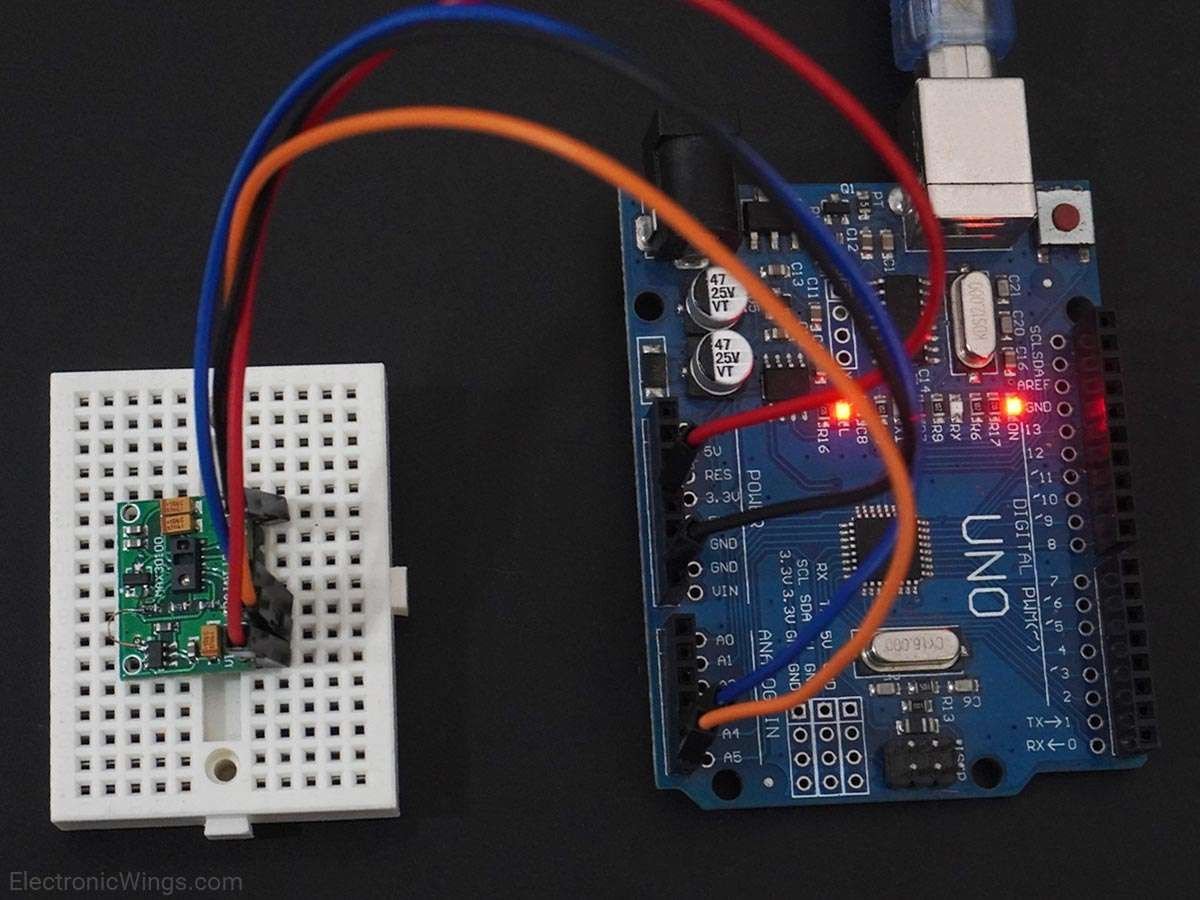 To find the heart rate (BPM) and Oxygen Saturation (SpO2) using MAX30100, we will use the I2C communication protocol and display the readings on the serial monitor of Arduino IDE.