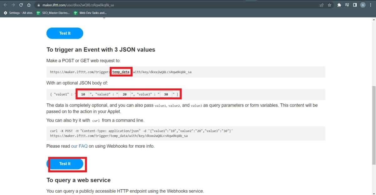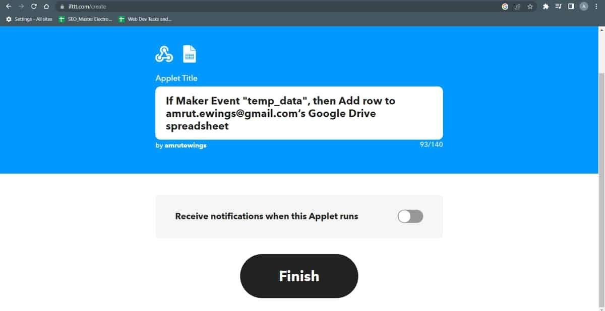 - Now nodemcu will communicate with the IFTTT Webhooks service to publish those readings on the spreadsheet.