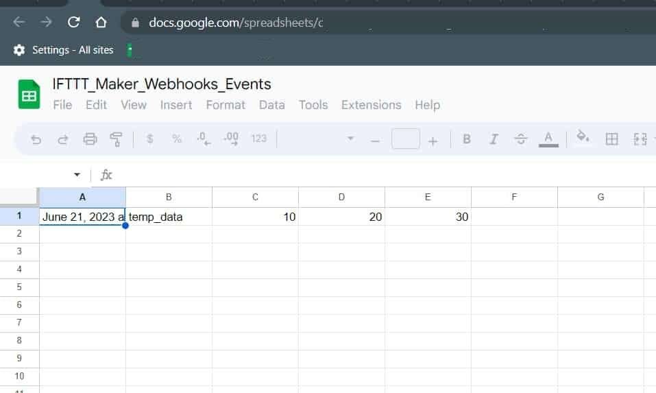 Now open your drive and check with your sheet name and open it and see the data that you have sent using IFTTT