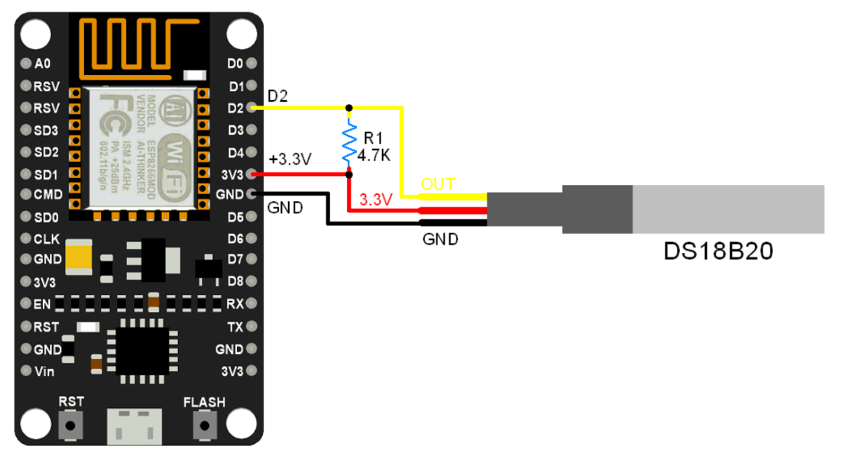 Let’s interface the DS18B20 temperature sensor to Nodemcu and display the surrounding temperature on the web server as well as on the serial monitor.