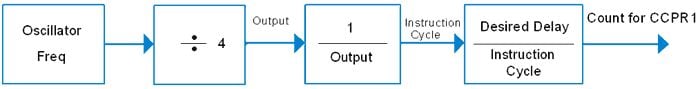 The following figure illustrates steps to calculate count for the desired delay which to be load into CCPR1 Register.