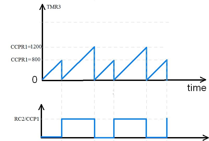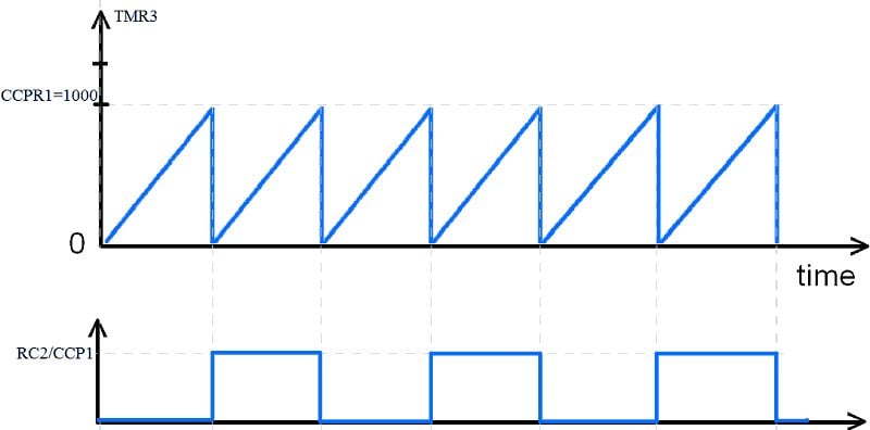 Also, remember that after every compare match between CCPR1 and Timer1/Timer3 CCP1IF interrupt flag is set.
