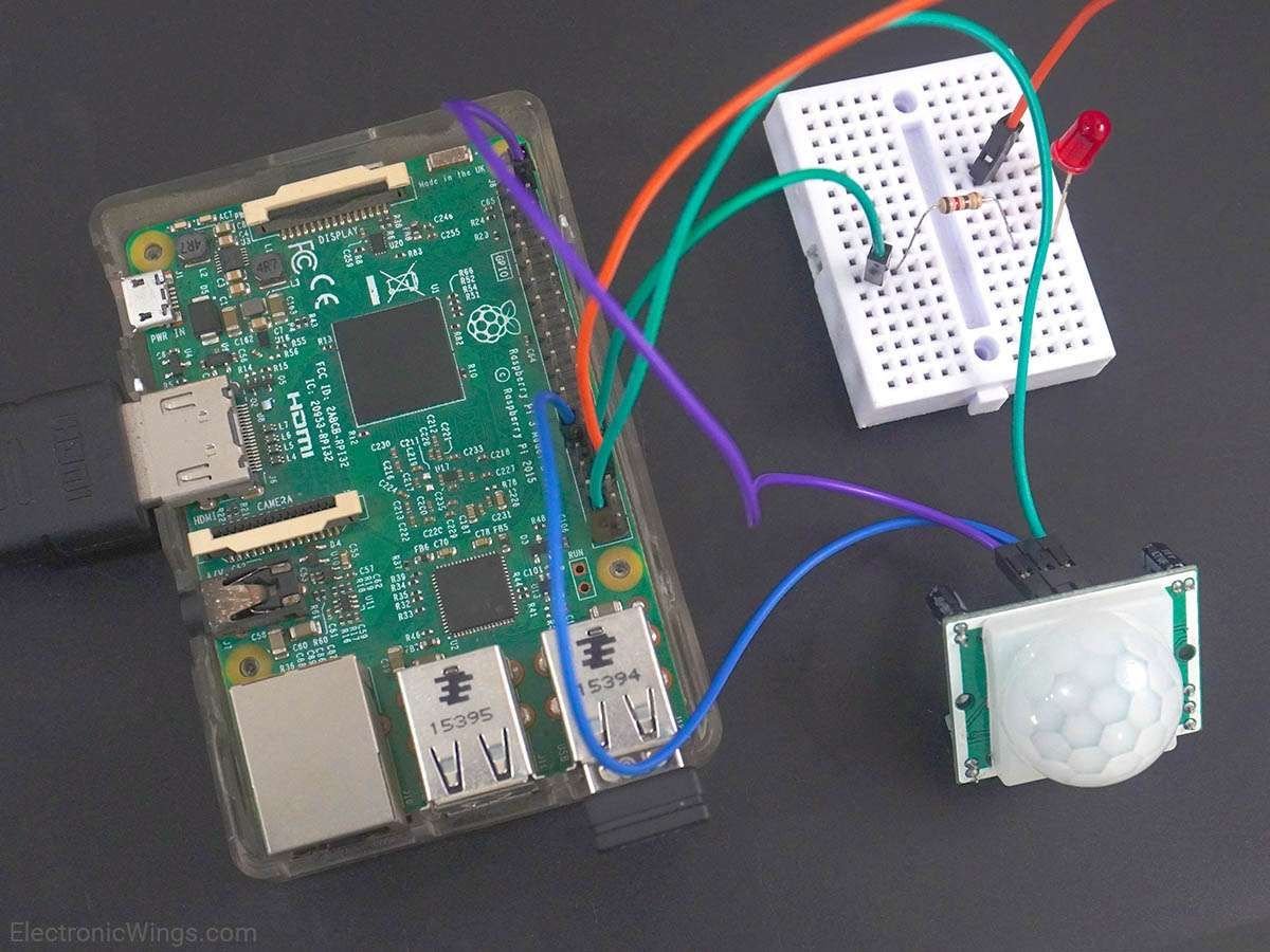 - Here, the LED is connected to GPIO12 (pin no. 32) whereas the PIR output is connected to GPIO5 (pin no. 29). Let’s write a python based program to interface the PIR motion sensor with Raspberry Pi. To know more about how to access GPIO on Raspberry Pi, you can refer Raspberry GPIO Access.