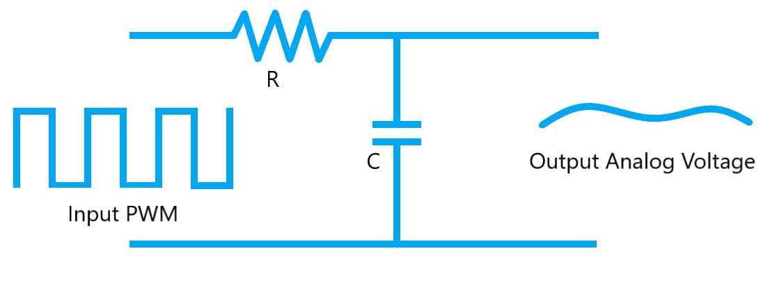 By repeating this ON-OFF pattern at a fast-enough rate, and with a certain duty cycle, with Low Pass RC-filter at the output, it will behave like a constant voltage, where voltage can be changed by varying the PWM Duty cycle.