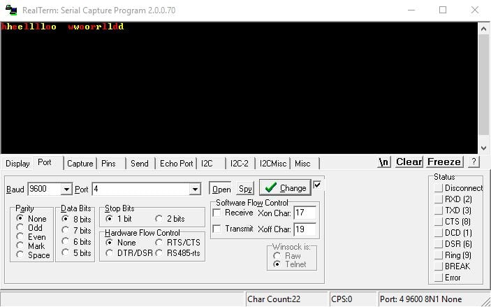 At PC/Laptop end, we use Realterm Software here.