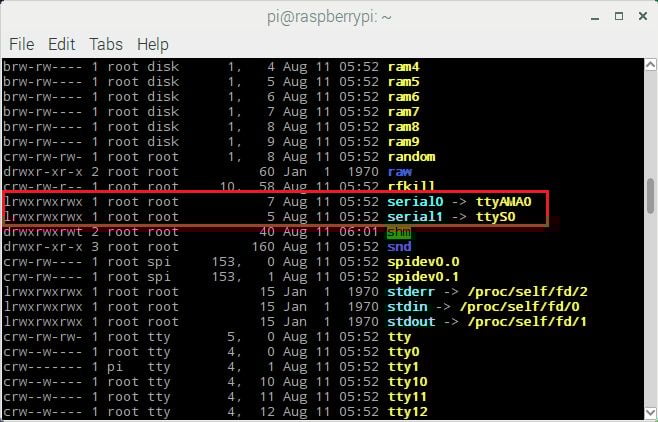 ls -l /devThe mapping of UART port is shown below,