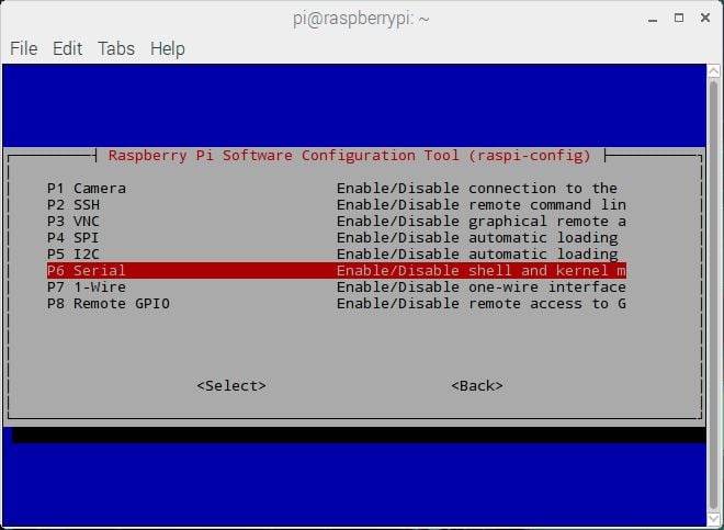 After selecting Interfacing option, select Serial option to enable UART