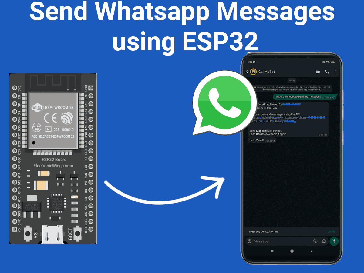 - We can set the ESP32 to send Alterts, Sensor data, notifications etc. directly on the WhatsApp.